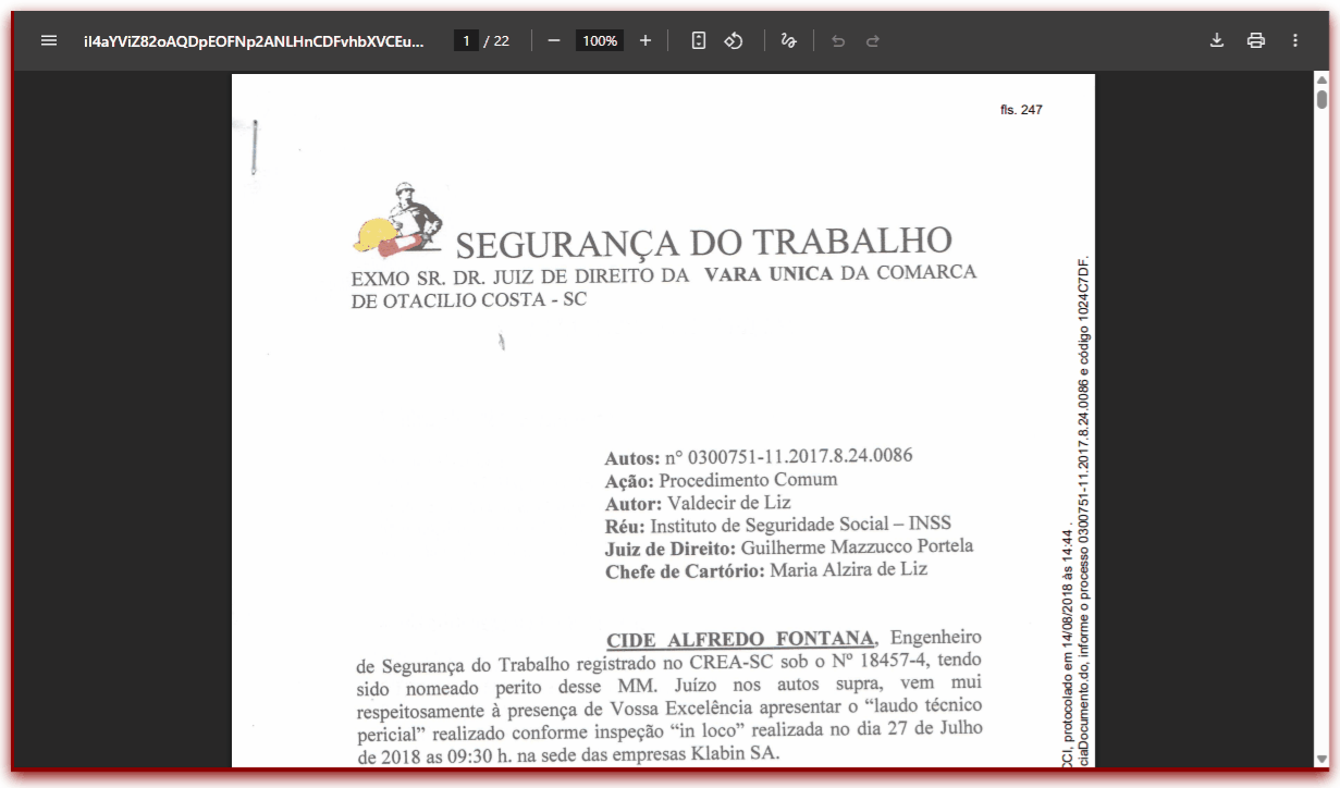 Visualize o documento completo: Uma janela modal será aberta mostrando todas as páginas do laudo técnico-pericial em formato visual. Você poderá rolar a página para ver todo o conteúdo do documento;
