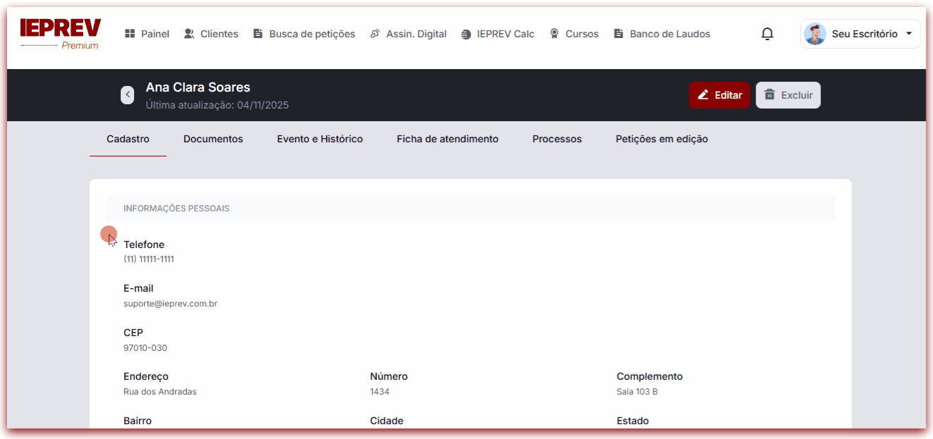 Acesse o cadastro do cliente: Abra o cadastro do cliente ao qual o evento, prazo ou tarefa está relacionado. Se precisar, acesse: "Como cadastrar um cliente".