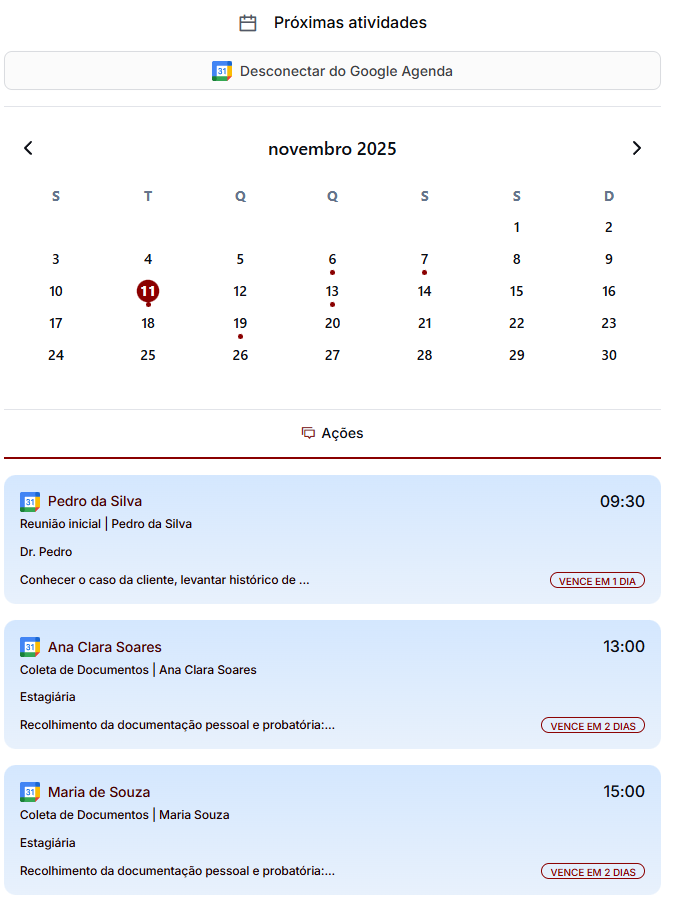 Com essa funcionalidade, você pode organizar seus compromissos de forma prática e manter todos os prazos do seu escritório sincronizados no seu Calendário em um só lugar.