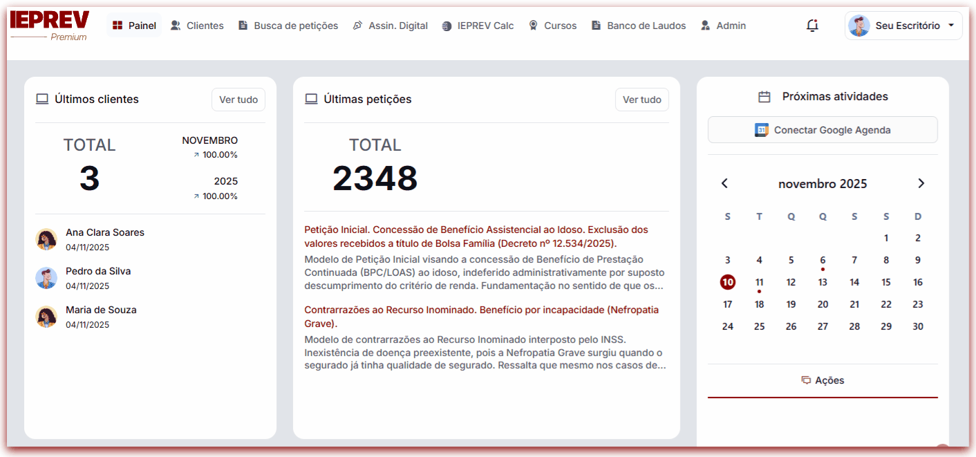 Necessário ter o Google Agenda integrado ao IEPREV Premium. Clique aqui e saiba mais.