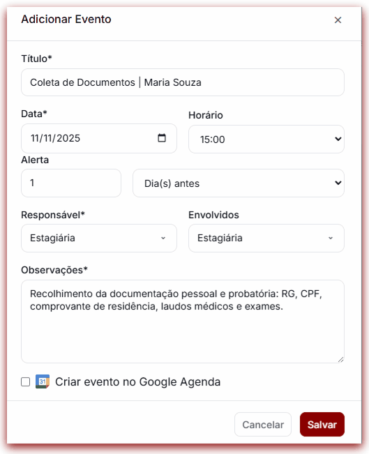 O evento será atualizado no calendário do IEPREV Premium e automaticamente sincronizado com o Google Agenda.