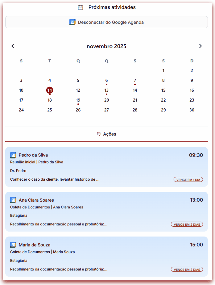 ⚠️ Importante: exclusões feitas no Google Agenda não são refletidas no IEPREV Premium.