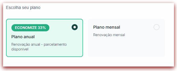 Escolha o seu plano entre mensal e anual.