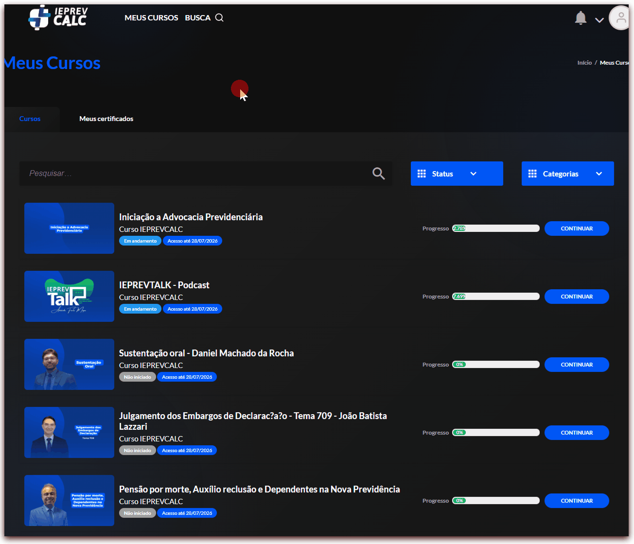 Para alterar acessar os cursos do IEPREV Premium, siga os passos abaixo:
